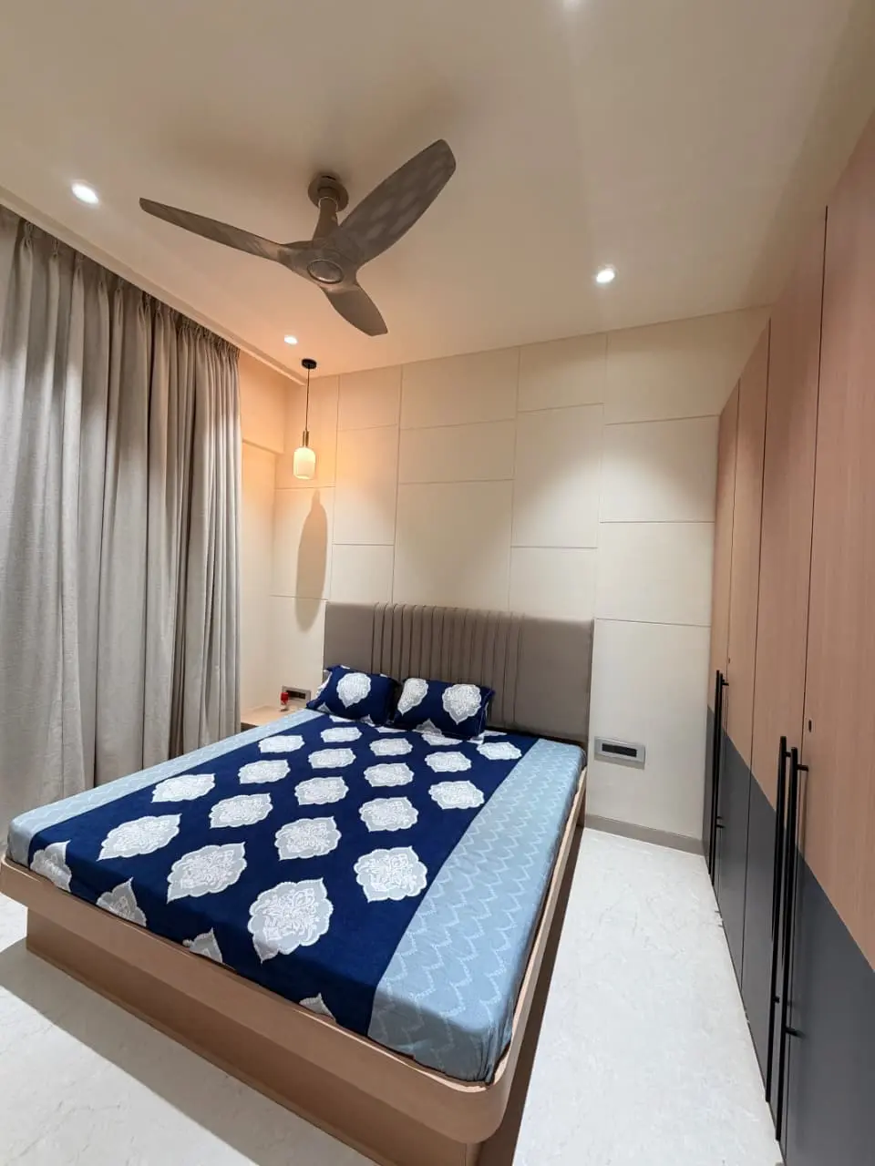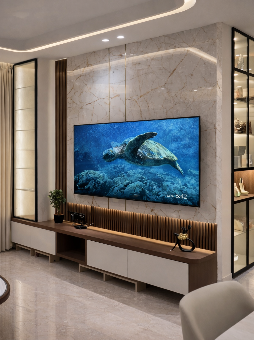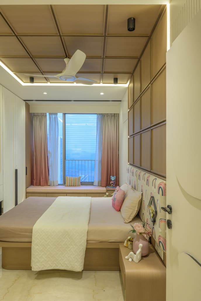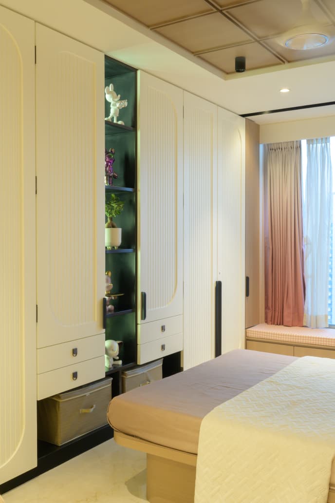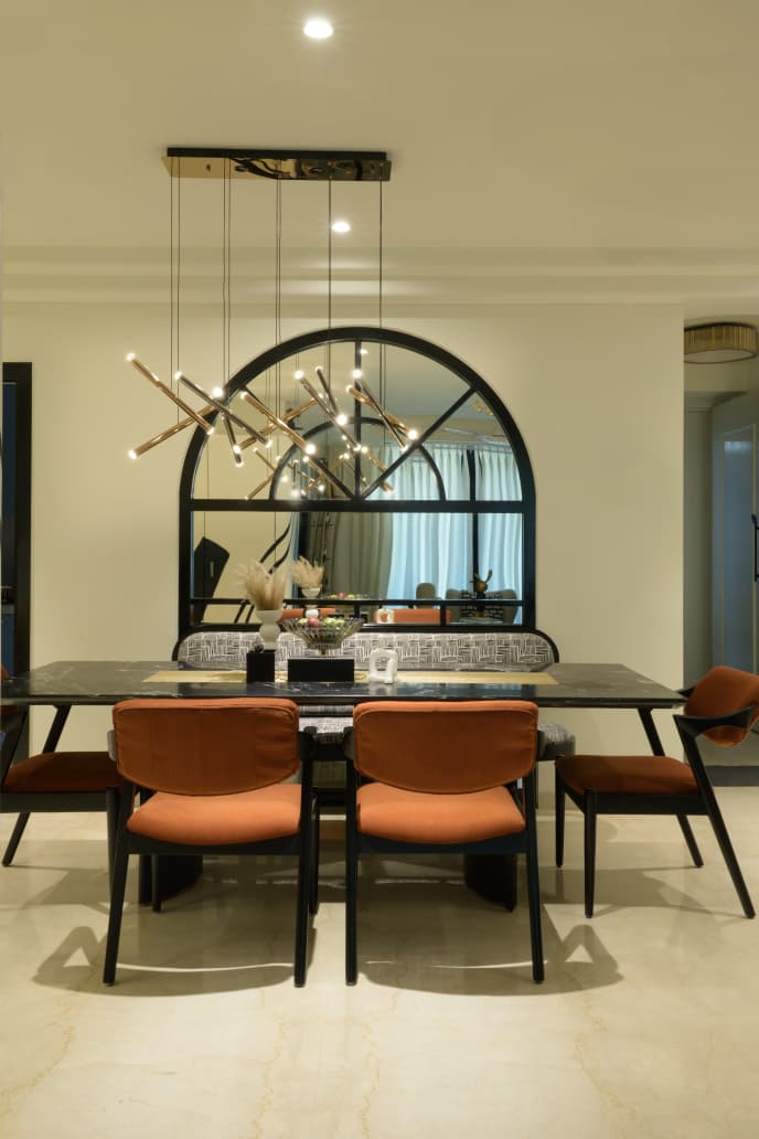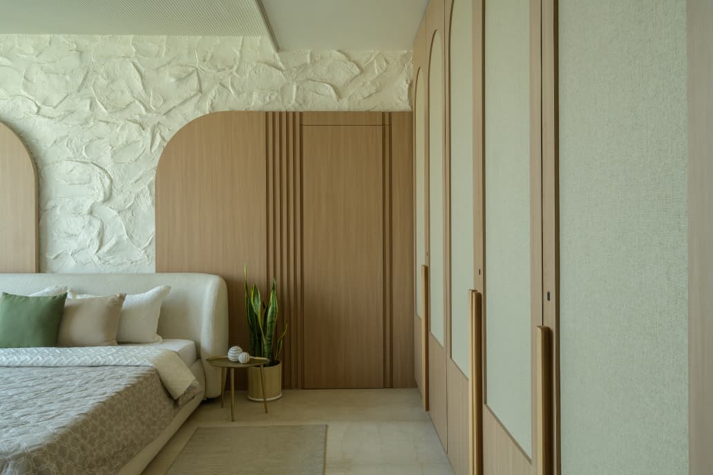 A thoughtfully designed luxury home featuring warm neutrals, layered lighting, and custom-crafted interiors by Morphic Interio.