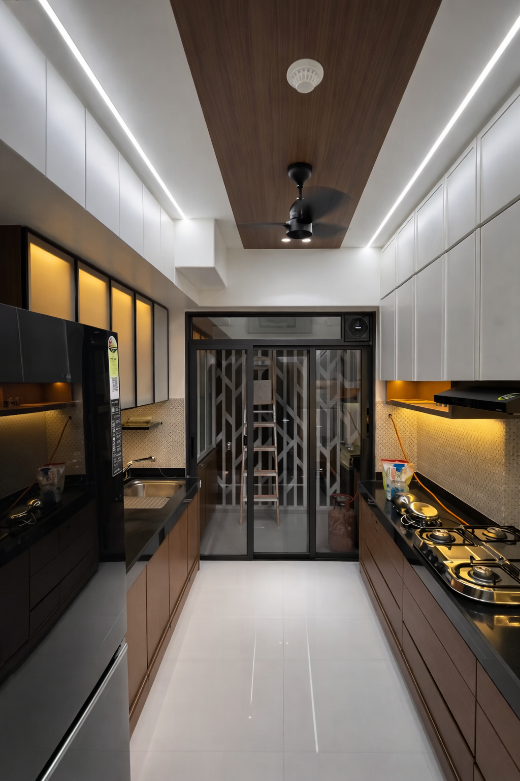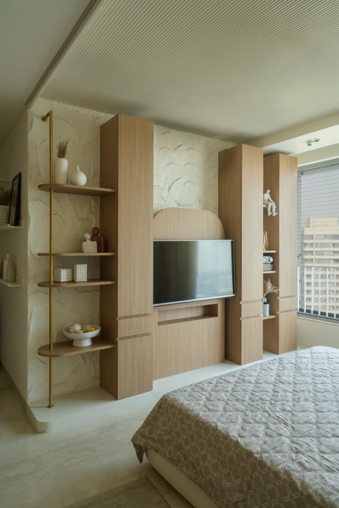 ,A refined urban home designed with warm neutrals, layered lighting, and custom-built details for everyday comfort..